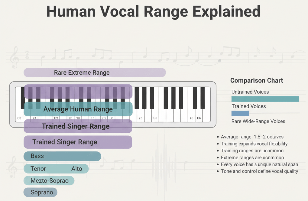 Charts showing extreme ranges often skip this explanation. For a visual reference, see vocal range chart.